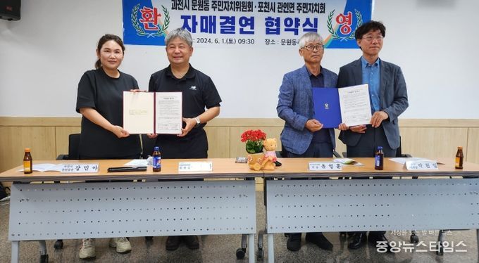 (중앙뉴스타임스 = 방재영 기자) 과천시 문원동 주민자치위원회와 포천시 관인면 주민자치회는 지난 1일 자매결연 협약식을 가졌다.
