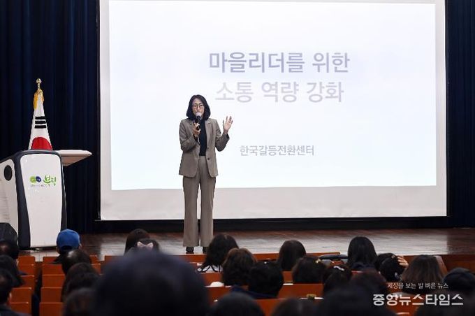 통장 300여 명이 참석한 이날 교육은 김민정 한국갈등전환센터 대표가 ‘마을 리더를 위한 소통 역량 강화’라는 주제로 진행했다.