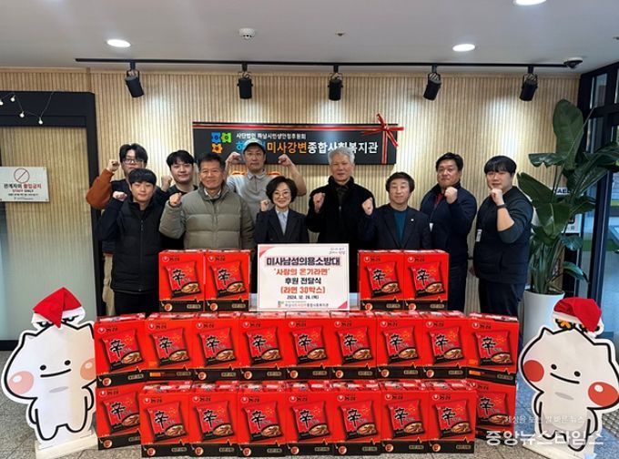(중앙뉴스타임스 = 방재영 기자) 미사남성의용소방대는 지역 내 취약계층 이웃들에게 따뜻한 온정을 나누기 위해 라면 30박스를 하남시미사강변종합사회복지관에 전달했다.