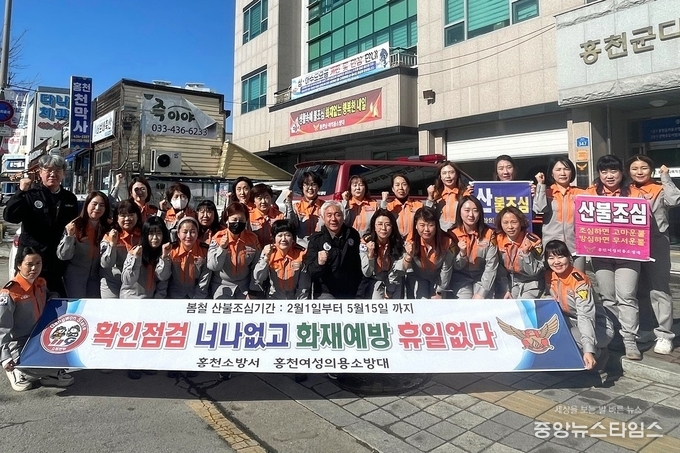 이 날 산불예방 캠페인에는 홍천읍행정복지센터 이인식 읍장과 이승훈 총무팀장 및 주무관, 홍천읍여성의용소방대원 등이 참여했다.