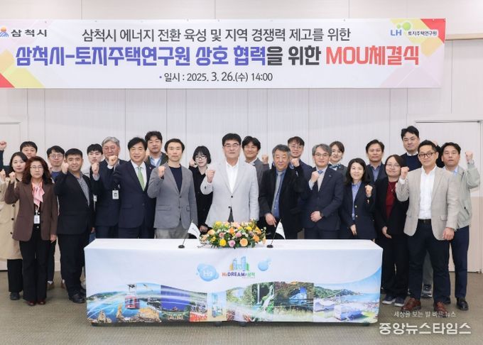 (중앙뉴스타임스 = 방재영 기자) 삼척시는 LH토지주택연구원과 수소에너지로의 전환 육성 및 지역 경쟁력 제고를 위한 상호협력방안을 모색하기 위해 26일 오후 2시 삼척시 본관 1층 시민회의장에서 협약식 및 세미나를 개최했다.