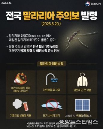 이천시보건소는 장마 전후로 말라리아 매개 모기가 증가할 것으로 예상하여 매개 모기 방제를 강화했으며, 위험 지역 제대군인 대상으로 말라리아 신속항원검사를 실시한다. 또한 모기 물림 예방수칙을 준수해달라고 당부했으며, 특히 말라리아 위험 지역에서 야간활동을 한 사람 중 발열 등 증상이 나타나면 가까운 의료기관에서 진료받을 것을 강조했다.