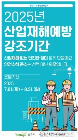 (중앙뉴스타임스 = 방재영 기자) 양주시가 산업 현장의 재해 예방과 안전문화 확산을 위해 오는 7월 1일부터 8월 31일까지 ‘2025년 산업재해예방 강조기간’으로 지정해 운영한다.