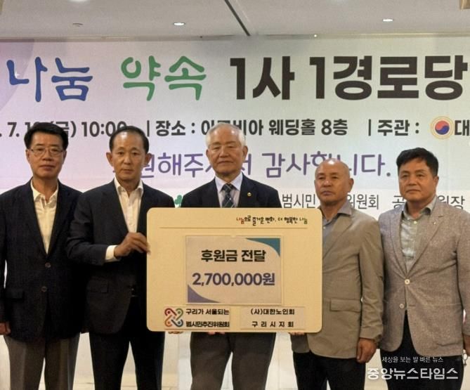 이날 전달된 후원금은 대한노인회 구리시지회를 통해 어르신 복지와 행사 운영 등에 소중히 사용될 예정이다.