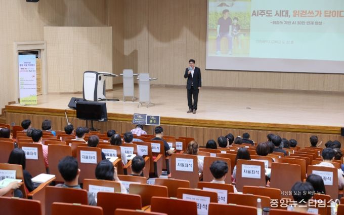 (중앙뉴스타임스 = 방재영 기자) 도성훈 인천시교육감은 31일 인천교육연수원에서 초·중등 교감 자격연수 대상자 122명을 대상으로 ‘AI 주도 시대, 읽걷쓰가 답이다’를 주제로 특별 강연을 진행했다.