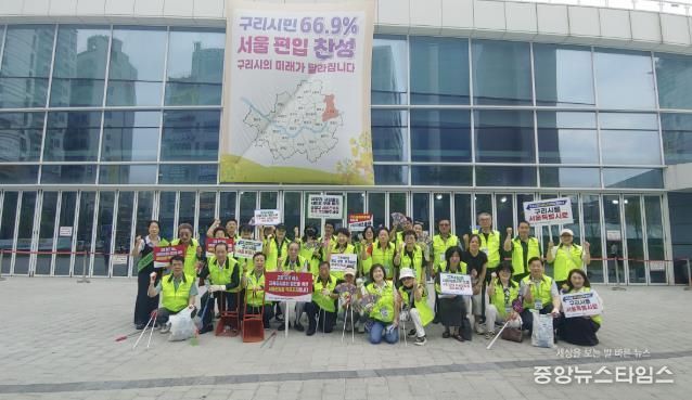 이날 행사에는 공동위원장, 자문위원, 동 추진위원장과 회원, 국장 등 40여 명이 참석해 서울 편입 홍보 전단지와 부채를 배부하며 서울 편입의 필요성과 기대효과를 알리고, 시민과의 직접 소통을 통해 공감대 확산을 위해 노력했다. 동시에 구리역 주변을 중심으로 쓰레기를 수거하는 줍킹 활동을 병행히야해 깨끗한 도시환경 조성에도 힘을 보탰다.