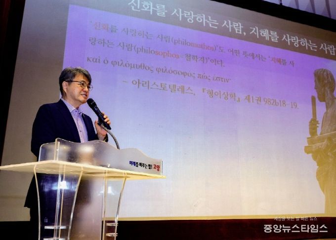 김헌 교수는 강연에서 “그리스 로마신화는 있는 그대로 받아들이면 안된다”며 “이야기 속에 있는 상징과 은유들을 통해서 인간이 경험할 수 있는 모든 것을 이해하는 지혜로 받아들어야 한다”고 설명했다.