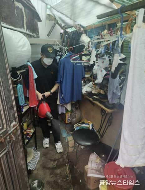 (중앙뉴스타임스 = 방재영 기자) 구리시 교문1동행정복지센터는 1일 교문1동지역사회보장협의체 주관의 특화사업으로 지역 내 취약계층 중 저장 강박 및 지층에 거주하는 가정에 해충 방역 서비스를 제공하고 있다고 밝혔다.