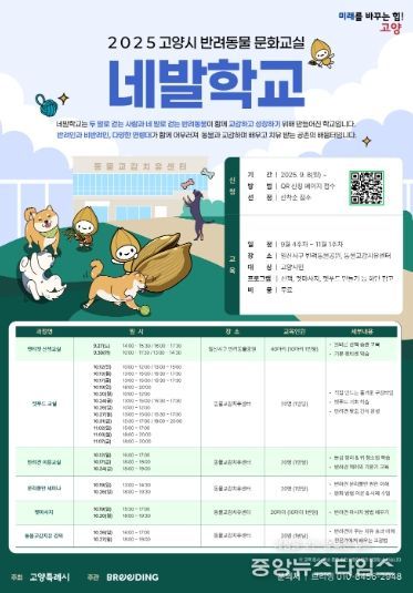 (중앙뉴스타임스 = 방재영 기자) 고양특례시는 반려동물과의 건강한 공존 문화를 조성하고 시민들의 반려동물 관련 지식을 증진하기 위해‘2025년 고양시 반려동물 문화교실’강좌별 수강생을 모집한다고 9일 밝혔다.