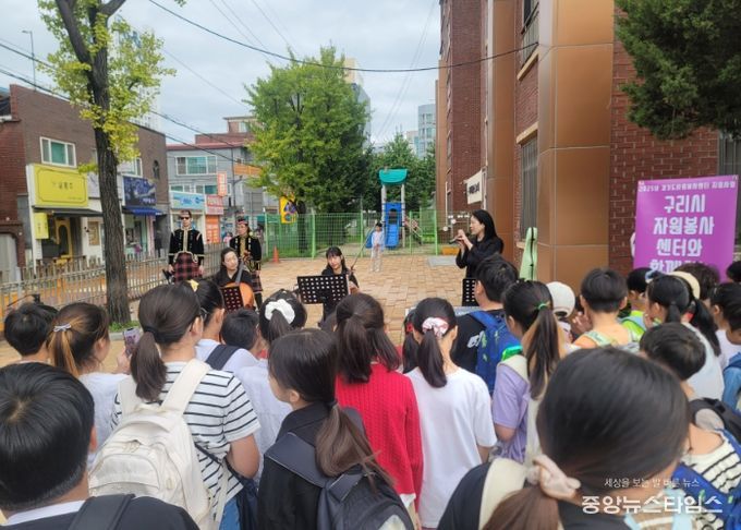 (중앙뉴스타임스 = 방재영 기자) 사단법인 구리시자원봉사센터는 9월 18일 교문초등학교에서 '등굣길 꿈꾸는 음악대' 세 번째 공연을 개최했다.