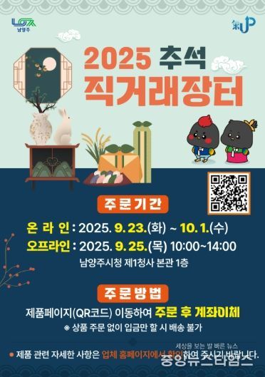 (중앙뉴스타임스 = 방재영 기자) 남양주시는 추석 명절을 맞아 10월 1일까지 관내 중소기업 제품을 홍보하고 판매하는 ‘명절 직거래장터’를 운영한다고 23일 밝혔다.