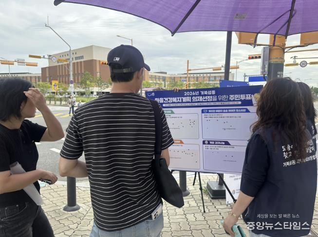 (중앙뉴스타임스 = 방재영 기자) 시흥시 거북섬동 지역사회보장협의체는 지난 22일 유동 인구가 많은 아파트 상가 주변에서 2026년 거북섬동 마을건강복지계획 사업 선정을 위한 주민투표를 진행했다.