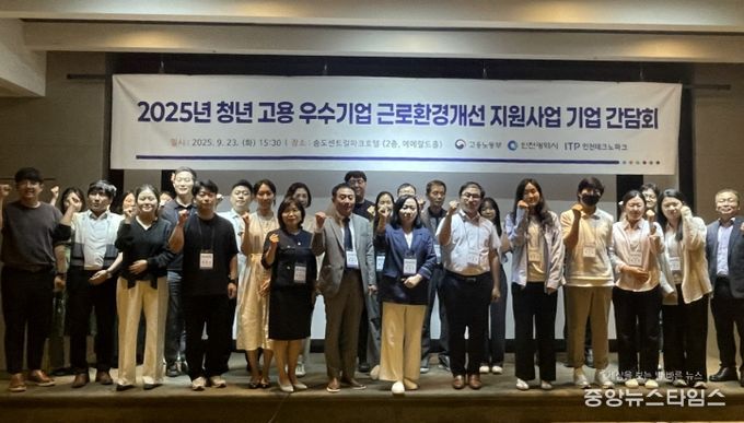 (중앙뉴스타임스 = 방재영 기자) 인천테크노파크(인천TP)는 지난 23일 송도센트럴파크호텔에서 ‘2025년 청년 고용 우수기업 근로환경개선 지원사업 간담회’를 개최했다.