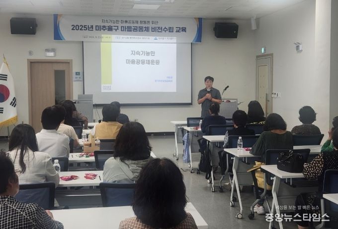 (중앙뉴스타임스 = 방재영 기자) 인천 미추홀구는 지난 23일 마을공동체와 지역 주민을 대상으로 ‘2025년 지속 가능한 마을공동체 비전 수립 교육’을 개최했다.