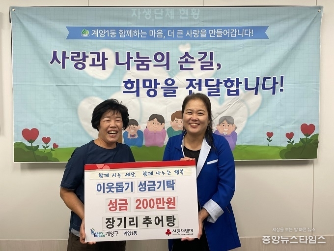 박미라 계양1동장은 “오랜 기간 지역사회를 위해 꾸준히 기부해오신 데 이어 이번에도 큰 금액의 성금을 전달해 주셔서 감사드린다.”라며 “이웃을 생각하는 따뜻한 마음이 우리 마을을 더 살기 좋은 곳으로 만들고 있다”고 전했다.