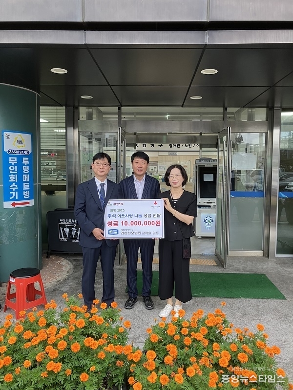(중앙뉴스타임스 = 방재영 기자) 인천 부평구 부평6동은 24일 가톨릭대학교 인천성모병원 교직원들로부터 추석맞이 이웃사랑 나눔 성금 1천만원(온누리상품권)을 기탁 받았다.