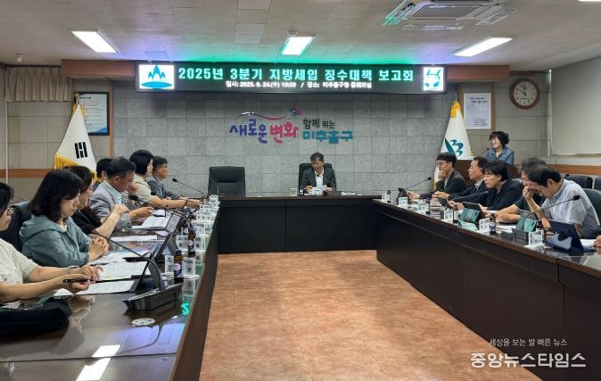 (중앙뉴스타임스 = 방재영 기자) 인천 미추홀구는 지난 24일 구청 중회의실에서 ‘2025년 3분기 지방세입 징수 대책 보고회’를 개최했다.