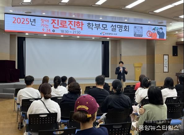(중앙뉴스타임스 = 방재영 기자) 인천 서구는 지난 24일 서구청 지하대회의실에서 학부모 및 학생들이 참여한 가운데 2025년 찾아가는 진로진학 학부모 설명회를 개최했다.