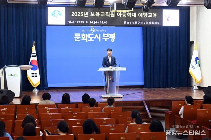 (중앙뉴스타임스 = 방재영 기자) 인천 부평구는 지난 24일 구청에서 지역 내 보육교직원 300여 명을 대상으로 아동학대 예방 교육 및 지도점검 사례 교육을 진행했다.