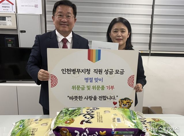 (중앙뉴스타임스 = 방재영 기자) 인천시사회서비스원 소속 미추홀푸르내는 최근 인천병무지청으로부터 추석 맞이 성금과 기부 물품을 전달받았다고 25일 밝혔다.