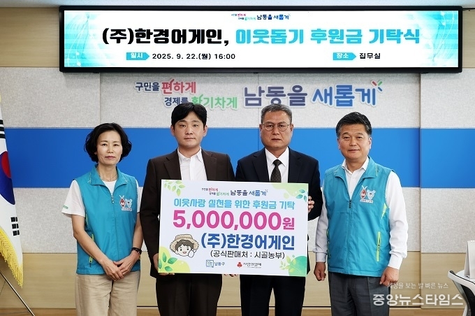 (중앙뉴스타임스 = 방재영 기자) 인천 남동구는 ㈜한경어게인으로부터 지역사회 어려운 이웃을 돕기 위한 후원금 5백만 원을 기탁받았다고 25일 전했다.