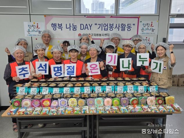 (중앙뉴스타임스 = 방재영 기자) 인천중구자원봉사센터는 민족 최대 명절인 추석을 맞아 지난 24일 인천공항에너지㈜(대표이사 이경용) 임직원과 함께 ‘온기 나눔 캠페인’과 연계한 ‘추석 명절 음식 나눔 행사’를 진행했다고 밝혔다.