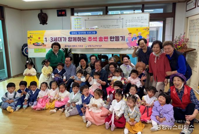 (중앙뉴스타임스 = 방재영 기자) 인천 부평구노인복지관은 민족의 명절인 추석을 앞두고 지난 22일부터 25일까지 부평구 내 6개소의 경로당에서 어르신과 지역 어린이집 원아들이 함께하는 ‘1․3 세대통합 송편만들기 행사’를 성황리에 마무리했다고 밝혔다.