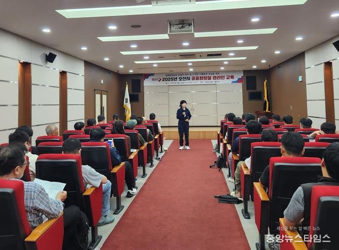 (중앙뉴스타임스 = 방재영 기자) 오산시는 지난 24일 오산시 환경사업소 홍보관에서 2025년 공중화장실 관리인 교육을 실시했다고 밝혔다. 이번 교육은 '오산시 공중화장실 등의 설치 및 관리 조례' 개정 이후 지난해에 이어 두 번째로 마련됐다.