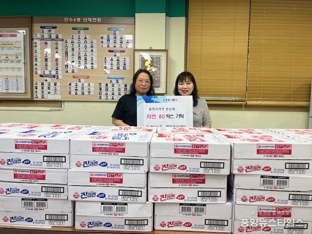 (중앙뉴스타임스 = 방재영 기자) 인천 남동구 만수6동 행정복지센터는 클릭디자인(대표 전선희)으로 부터 라면 80상자를 기부받았다고 26일 밝혔다.