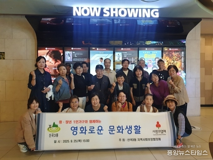 (중앙뉴스타임스 = 방재영 기자) 인천 부평구 산곡3동 지역사회보장협의체는 지난 25일 중장년 1인 가구 및 협의체 위원 총 24명과 함께 ‘영화로운, 문화생활’행사를 추진했다고 밝혔다.