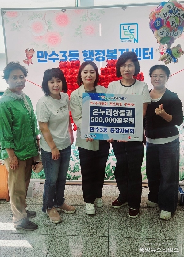 신희자 동장은 “매년 지속적으로 이웃사랑을 실천하고 있는 만수3동 통장자율회에 감사드리며, 이번 온누리상품권 지원은 취약계층뿐만 아니라 전통시장 등 지역경제 활성화에도 큰 도움이 될 것이다”라고 전했다.