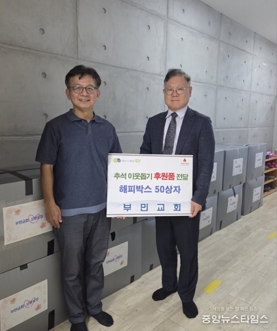 (중앙뉴스타임스 = 방재영 기자) 인천 부평구 부개3동 행정복지센터는 지난 26일 부민교회로부터 참치, 라면, 샴푸 등 생필품으로 구성된 ‘추석 선물꾸러미’ 50상자를 기탁받았다.