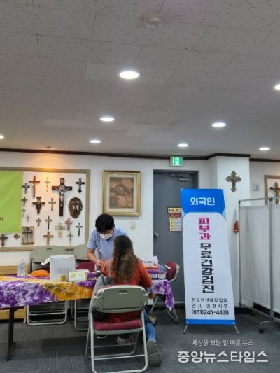 이날 검진에는 외국인 근로자와 다문화가정 주민이 참여했으며, 한센병을 비롯한 각종 피부질환 검진을 진행했다.