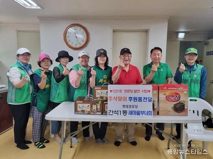 (중앙뉴스타임스 = 방재영 기자) 인천 남동구 간석1동 새마을협의회(회장 최종규)와 부녀회(회장 최재경)는 추석을 맞아 1단1로 결연을 맺은 금호아파트 경로당과 현대홈타운아파트 경로당을 방문해 두유와 김 등 후원품을 전달했다고 30일 전했다.