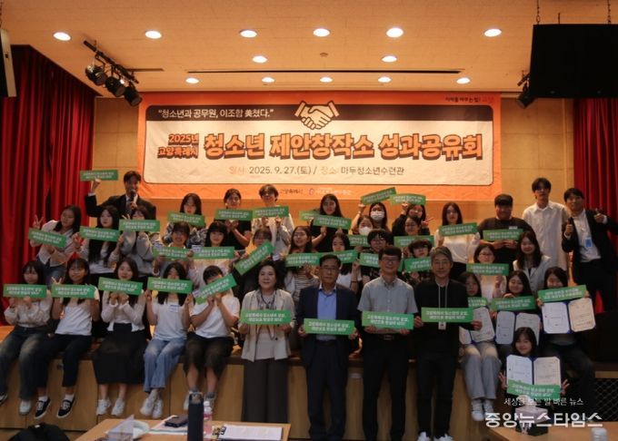 (중앙뉴스타임스 = 방재영 기자) 고양특례시는 지난 27일 마두청소년수련관에서‘2025년 청소년 제안창작소’성과공유회를 개최하고, 청소년들이 직접 발굴한 정책제안발표 및 우수팀 시상식을 진행했다고 밝혔다.