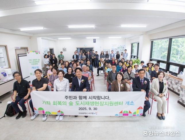 (중앙뉴스타임스 = 방재영 기자) 인천광역시 서구는 9월 30일 가좌1동에서 ‘가좌 회복의 숲 도시재생현장지원센터’ 개소식을 열고 본격 운영에 들어갔다.