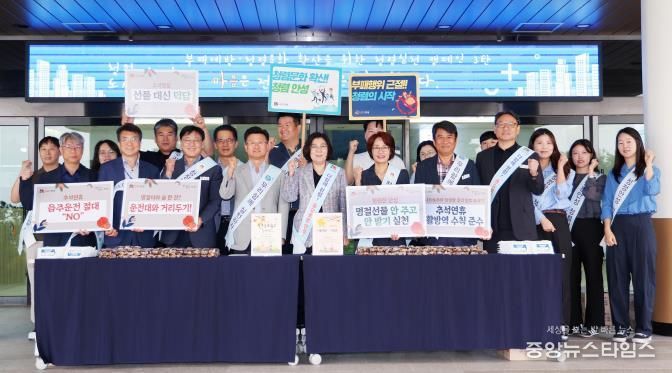 (중앙뉴스타임스 = 방재영 기자) 안성시는 지난 30일 시청 로비에서 추석명절을 앞두고 선물 주고받는 관행을 개선하고 청렴한 명절문화 정착을 위해 ‘청렴주의보 발령과 함께 선물 안 주고 안 받기 캠페인’을 개최했다.