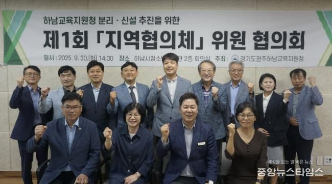 (중앙뉴스타임스 = 방재영 기자) 경기도광주하남교육지원청은 9월 30일, 하남시 청소년수련관 회의실에서 '하남교육지원청 분리ㆍ신설 지역협의체' 협의회를 개최했다.