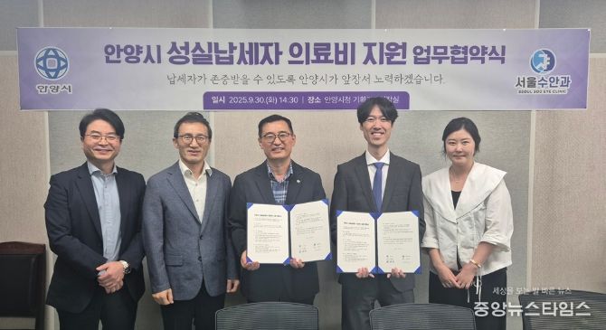 (중앙뉴스타임스 = 방재영 기자) 안양시는 지난달 30일 오후 2시30분 3층 기획경제실장실에서 관내 의원인 서울수안과와 ‘성실납세자 의료비 지원’ 업무협약을 체결했다고 1일 밝혔다.