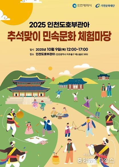 (중앙뉴스타임스 = 방재영 기자) 인천시는 오는 9일 인천도호부관아에서 ‘2025 추석맞이 민속문화 체험마당’을 개최한다고 2일 밝혔다.