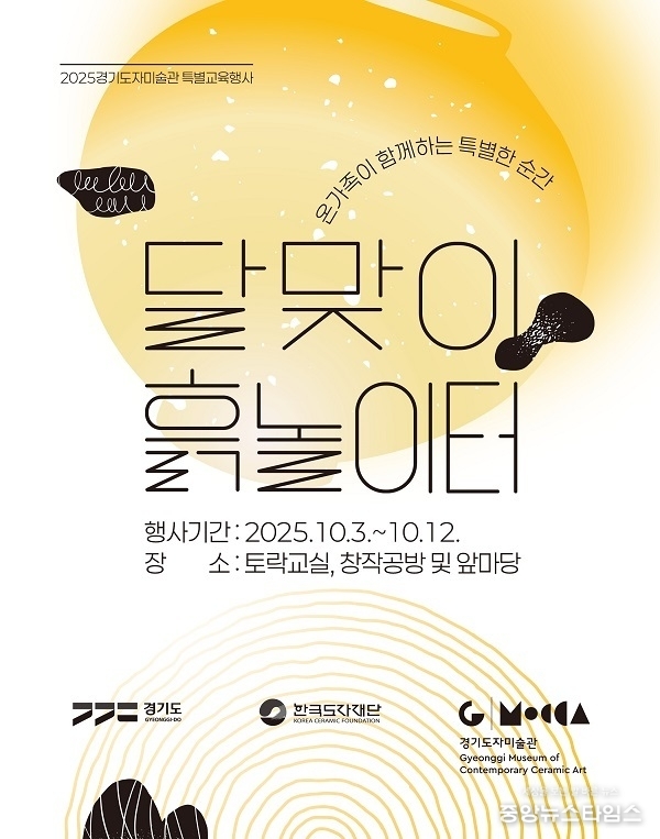 (중앙뉴스타임스 = 방재영 기자) 한국도자재단 경기도자미술관이 3일부터 12일까지 추석맞이 특별 교육 행사 ‘달맞이 흙 놀이터’를 창작공방·마당과 토락교실에서 개최한다.