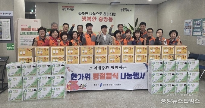 아울러 처인구 중앙동 주민자치위원회는 행정복지센터에서 ‘추석 명절음식 나눔 사업’을 개최해 지역내 25가구에 직접 만든 명절 음식을 전달했다.