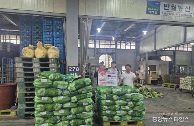 (중앙뉴스타임스 = 방재영 기자) 안산시 농수산물도매시장은 지난 2일 도매시장 내 중도매인인 반월농산(대표 노영현)으로부터 추석 명절을 맞이해 배추 1,800kg을 기탁받았다고 4일 밝혔다.