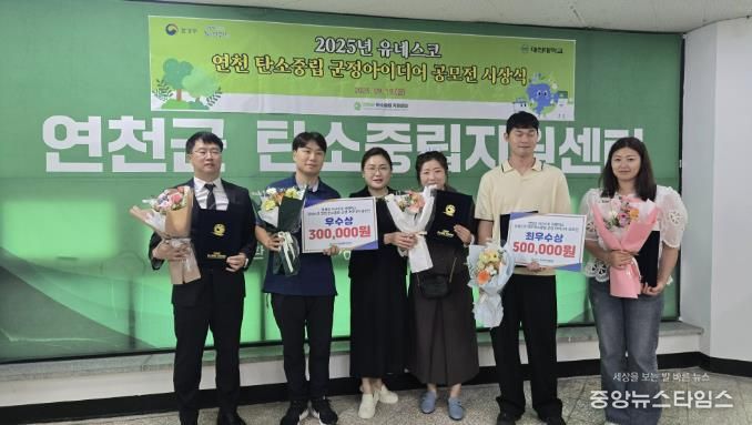 (중앙뉴스타임스 = 방재영 기자) 연천군 탄소중립지원센터는 지난 9월 19일, ‘유네스코 연천 탄소중립 군정 아이디어 공모전’ 시상식을 개최했다. 이번 공모전은 기후 위기 극복과 탄소중립 실현을 위한斬신하고 실천 가능한 군정 아이디어를 발굴하기 위해 추진됐다.