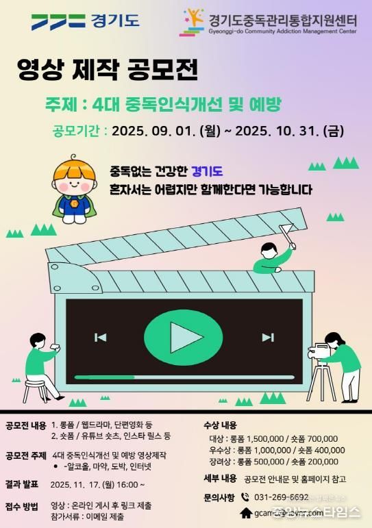 박인희 경기도 정신건강과장은 “짧지만 강렬한 영상 콘텐츠는 중독의 위험성을 인식시키는 데 최적화된 형식”이라며 “알코올, 마약 등 중독에 대한 경각심을 높이고 예방 문화를 확산할 수 있는 참신한 콘텐츠가 많이 나오길 기대한다”고 말했다.