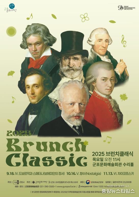 (중앙뉴스타임스 = 방재영 기자) 군포문화재단은 오는 10월 16일 오전 11시, 군포문화예술회관 수리홀에서 ‘2025 브런치클래식’의 다섯 번째 공연을 개최한다.