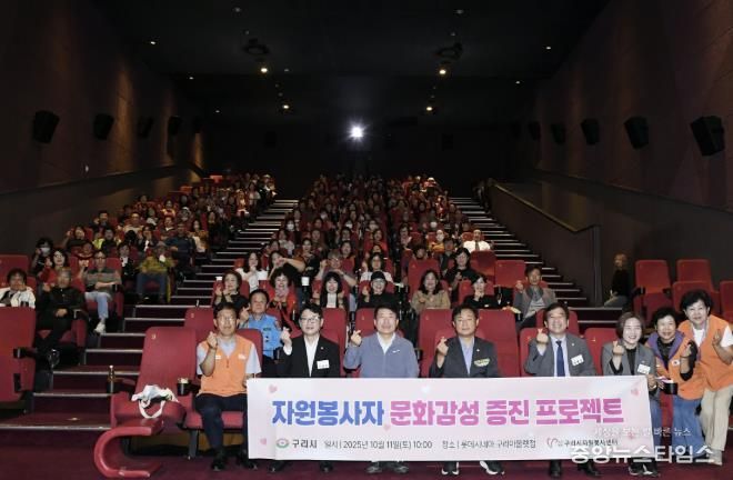 (중앙뉴스타임스 = 방재영 기자) 사단법인 구리시자원봉사센터는 지난 11일 롯데시네마 구리 아웃렛 점에서 자원봉사자 180명을 초청해 영화 관람 행사를 개최했다.