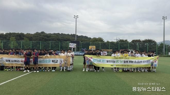 (중앙뉴스타임스 = 방재영 기자) 경기도성남교육지원청은 11~12일 양일간 탄천 제1체육공원에서 『2025 학교폭력예방을 위한 하반기 성남 학교스포츠클럽 축구대회』 개막식을 개최했다.