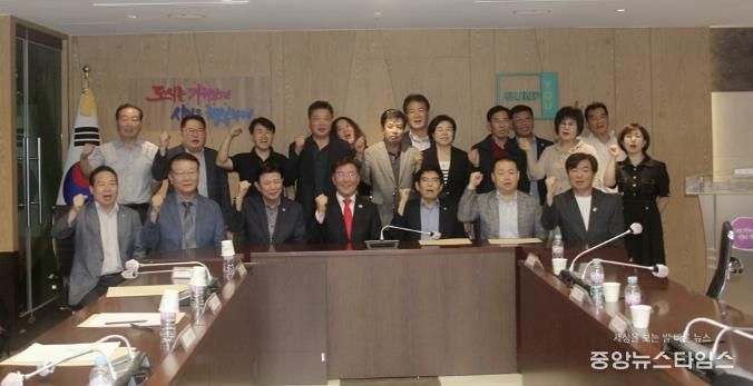 이영호 군포신문 대표의 사회로 진행된 이날 임시총회에는 하은호 시장, 정윤경 도의회부의장, 최진학 국민의힘 위원장, 이영식 노인회장, 주근동 문화원장, 한진운 재개발연합회장, 김공주 학교운영위원장협의회장, 김사녀 주민자치회 회장, 김선옥 통장협의회 회장, 김순희 지역사회보장협의체 회장, 김정옥 리모델링연합회 회장, 김창원 재건축연합회 회장, 박상환 장애인단체총연합회 회장, 서태연 새마을회 회장, 이성민 자율방범대 연합대장이 참석해 지하화 결의를 다졌다. 또 이세균 상인연합회 회장, 이택진 미래도시가치추진단 대표, 정진호 장애인체육회 사무국장, 주성하 위생단체협의회 회장, 채경택 아파트연합회 회장, 한항교 안전보안관 회장도 참석해 “군포시 구간 6개 전철역 지하화를 위해 모든 역량을 총결집하자”고 힘을 보탰다.
