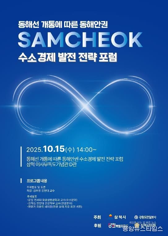 이번 포럼은 ‘삼척-포항 동해선, 수소경제 벨트의 핵심축이 되다’를 주제로 오는 15일 오후 2시 삼척 이사부독도기념관 D관에서 열린다.